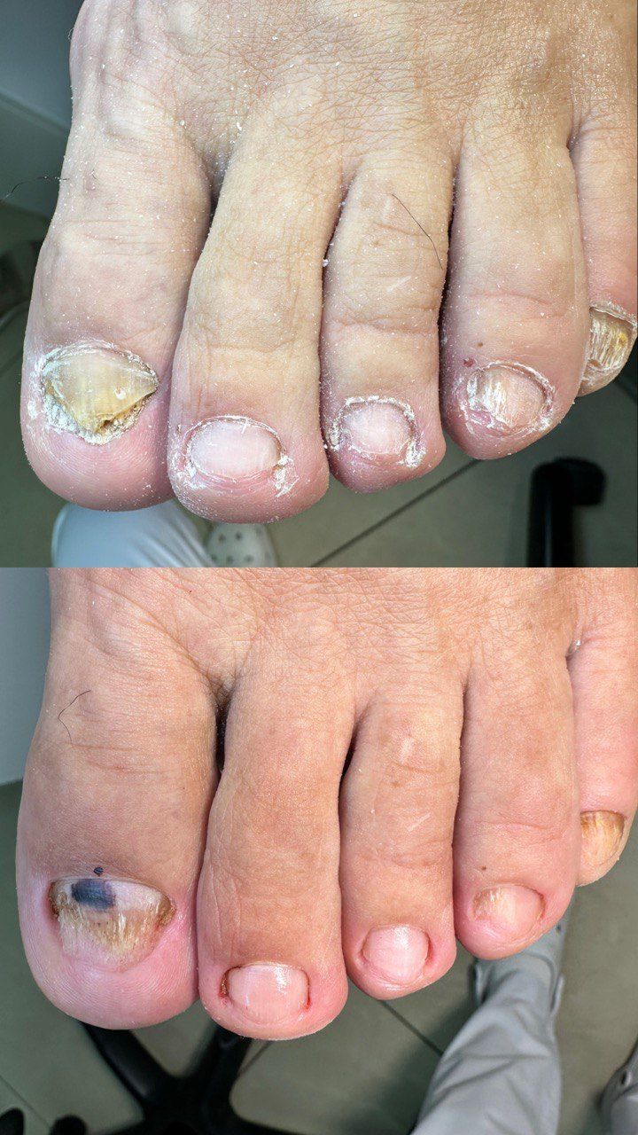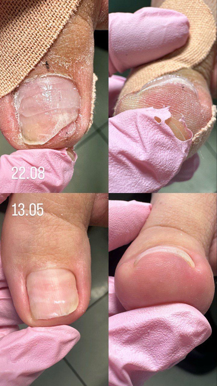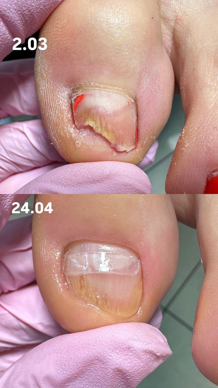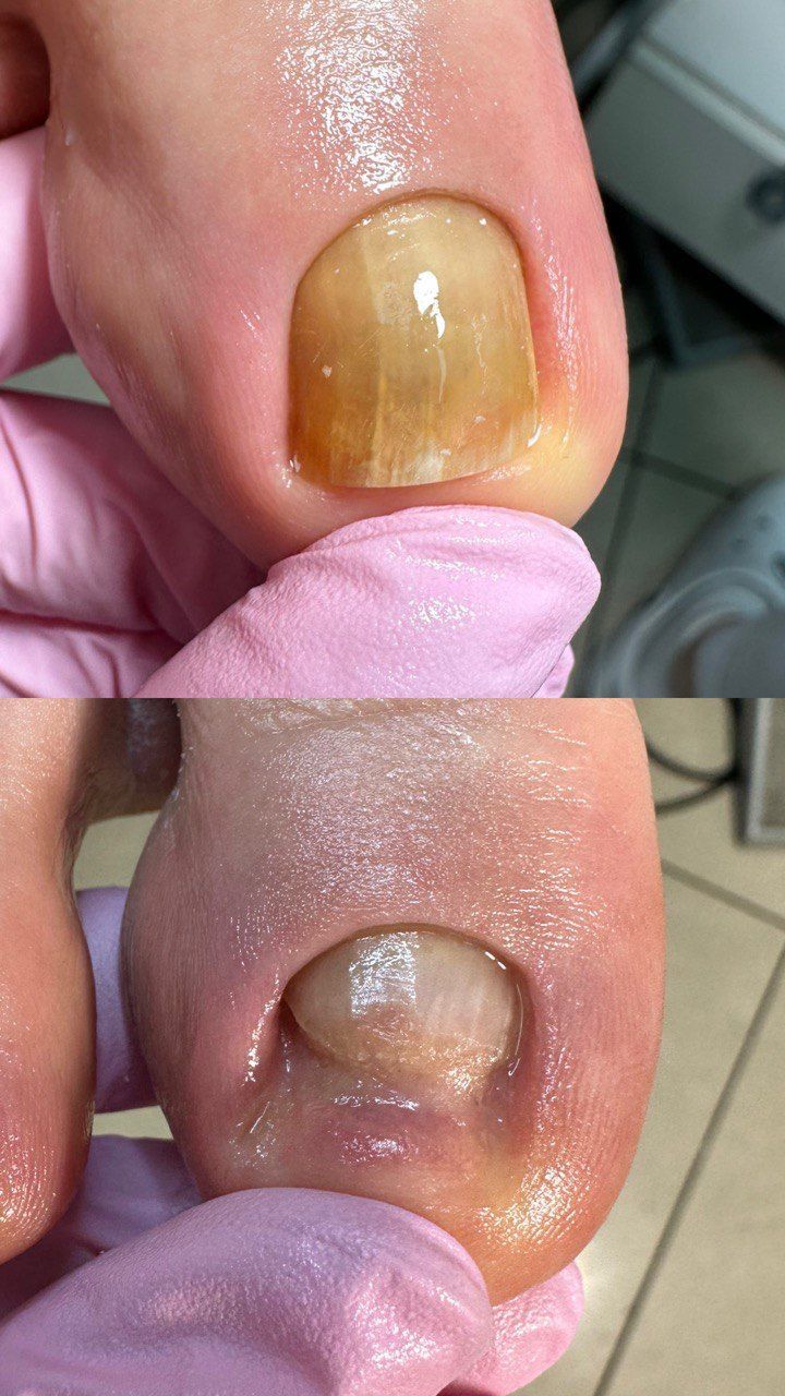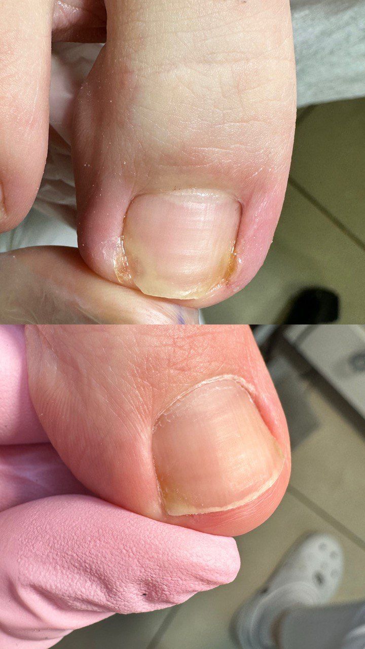 Обработка проблемных ногтей:онихогрифоз(утолщенные, скрученные ногти), онихолизис(пустота под ногтем)
