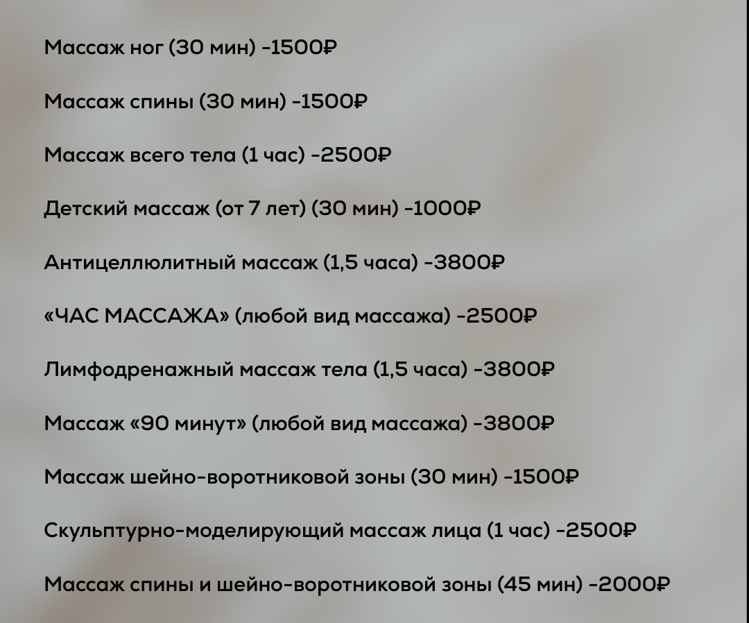 ПРАЙС НА УСЛУГИ